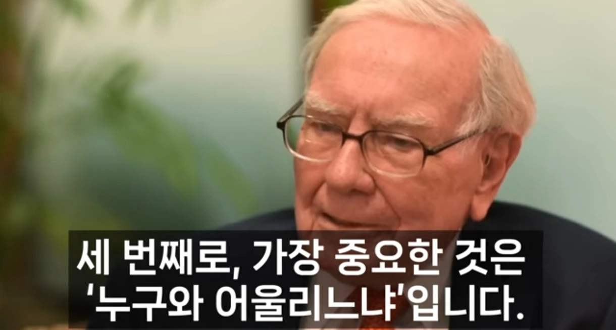 워렌 버핏은 '진정 성공하고 싶은 사람에게 필요한 3가지'가 있다고 한다. 첫째, "자기 자신에 투자해라" 자신에게 투자하면 그 누구도 그것을 빼앗아 갈 수 없고 당신의 가치를 올리는 방법이다, 둘째 "평생 하나뿐인 '몸'을 젊었을 때부터 스스로 아끼고 관리해라", 셋째 "자신보다 나은 사람, 존경하고 본받을만한 사람과 어울려라"라고 말하였다.