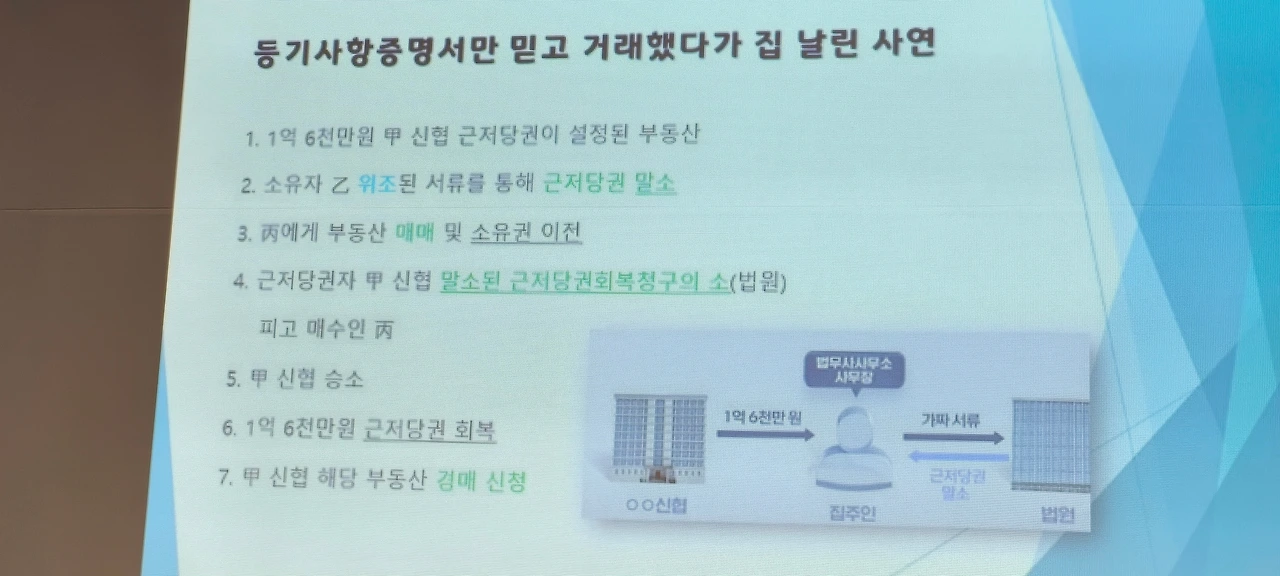 등기부는 공적인 신뢰 장부가 아니라고 법원은 단언한다. 사기꾼들은 어떻게든 새로운 사기 수법을 개발해서 나 같은 일반인들을 벗겨 먹는다. 등기부 믿지 마세요. 그럼에도 불구하고 전세 계약을 한다면 계약 당일날 스마트폰으로 등기부 실시간 체크는 필수이다.