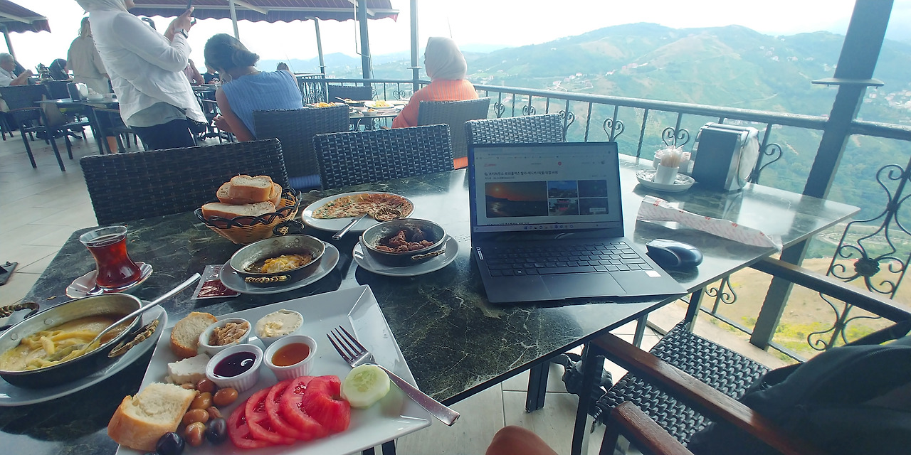 표지사진: 튀르키예 북동부 해안도시 Trabzon 산비탈의 에어비앤비 주택에서 바라본 흑해