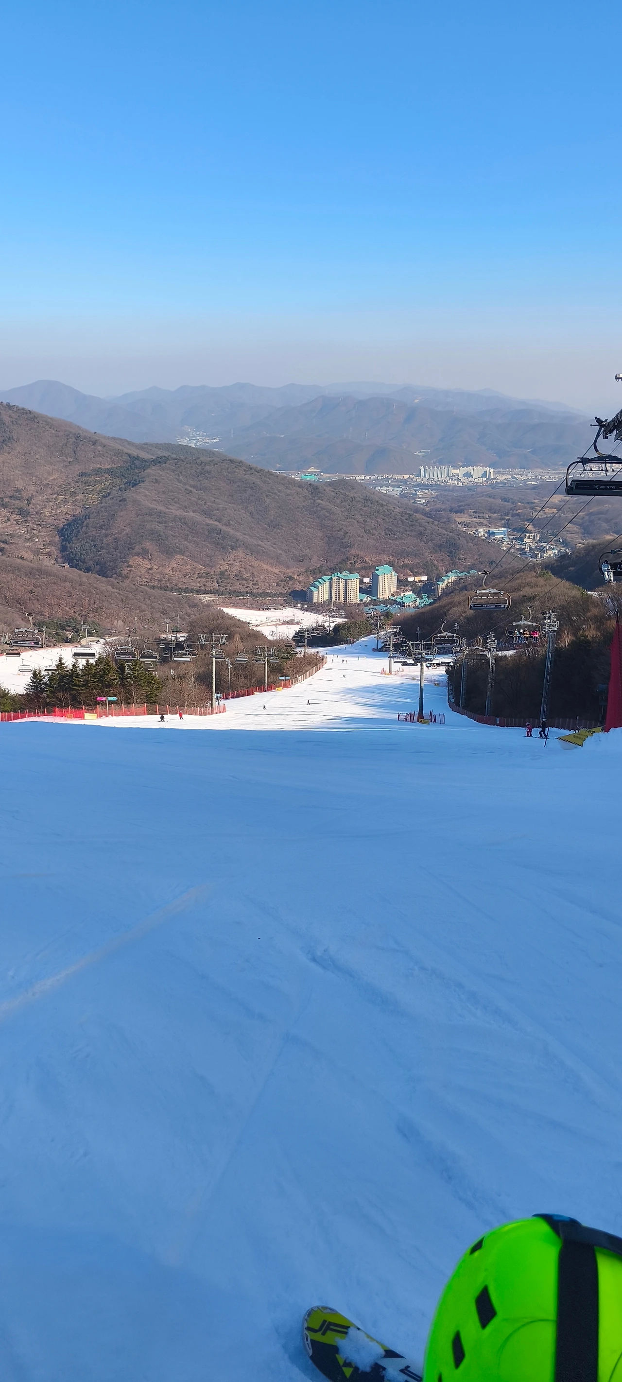 큰 아들은 신났다. 이렇게 좋은 설질에 광활함과 한적함에 카빙으로 엉덩이가 설면에 닿을 정도로 눌러가며 맘 놓고 고속 질주한다. 상대적으로 운동 신경이 많이 떨어지는 딸도 용평에서보다 훨씬 편하게 탄다. 아무리 가르쳐도 몸턴에서 벗어나지 못했는데 오늘 원포인트 레슨을 해주니 드디어 터득하고 재밌다며 내려온다. 이제야 알겠다며. 드디어 A자 벗어났군. 상체를 고정시키고 하체만 돌리며 내려오는 모습에 '엄지 척'을 해줬더니 환하게 웃으면서 내려온다.