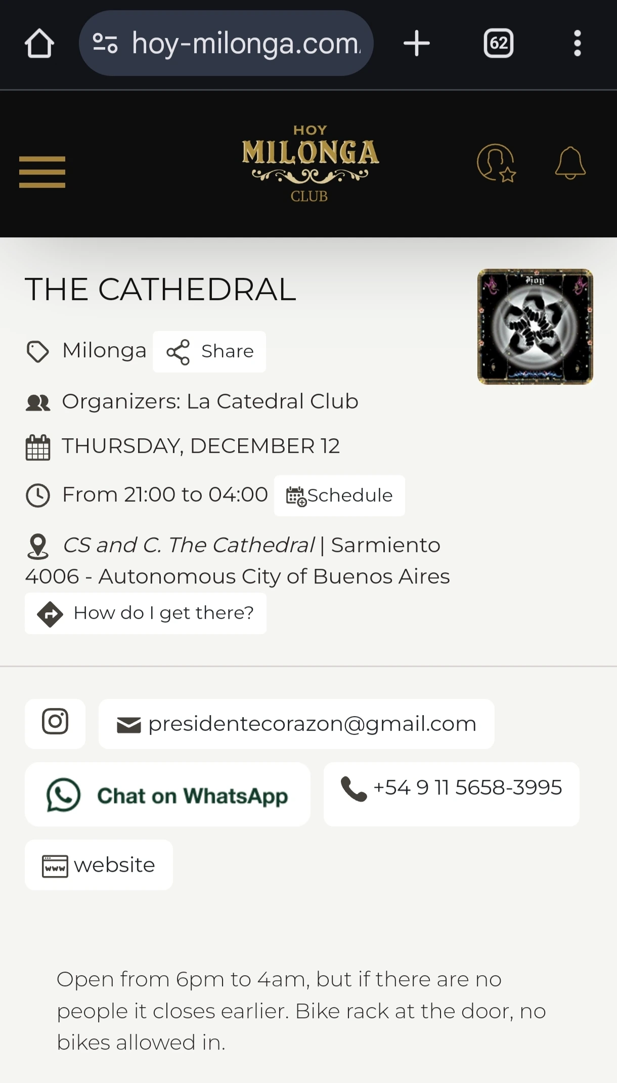 흐트러진 나를 인지하고 안전 기지가 되겠다고 마음을 먹으니 마음이 깊은 평형 상태로 들어감을 느낀다. 이런 마음을 가지고 며칠 만에 다시 부에노스아이레스의 안 가본 밀롱가를 가본다.