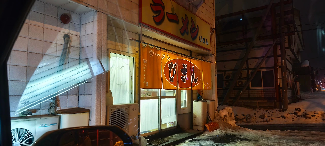 숙소 근처의 로컬 라면 식당에서 저녁을 먹는다. 주인 노부부가 아이들이 맛있게 먹는 모습을 흐뭇하게 바라보며 일본어를 할 줄 아는 큰 딸과 담소를 나누고 다 먹고 나서 아이들에게 초콜릿 바를 각자 하나씩 선물로 준다.