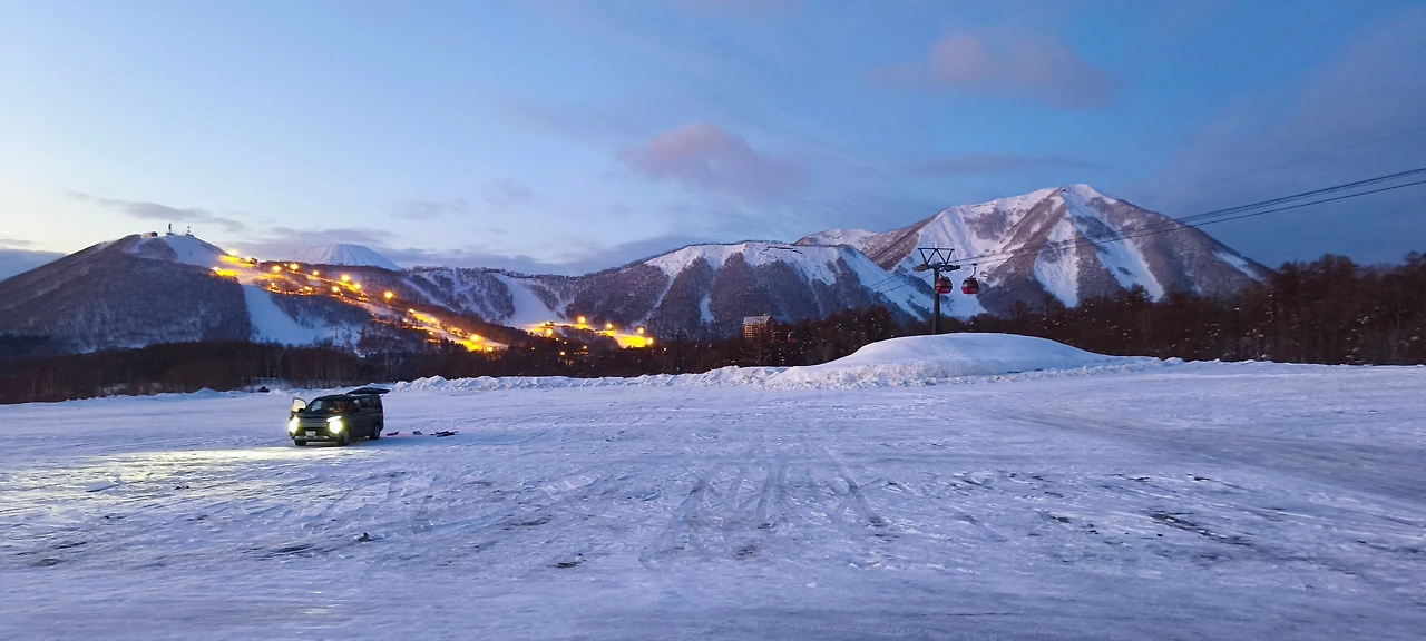 다 같이 가장 마지막까지 스키를 타다가 렌트카가 주차된 몇 대 안 남은 주차장으로 돌아와서 건너편 슬로프의 일몰을 바라본다. 가슴이 탁 트이는 시원함이다.