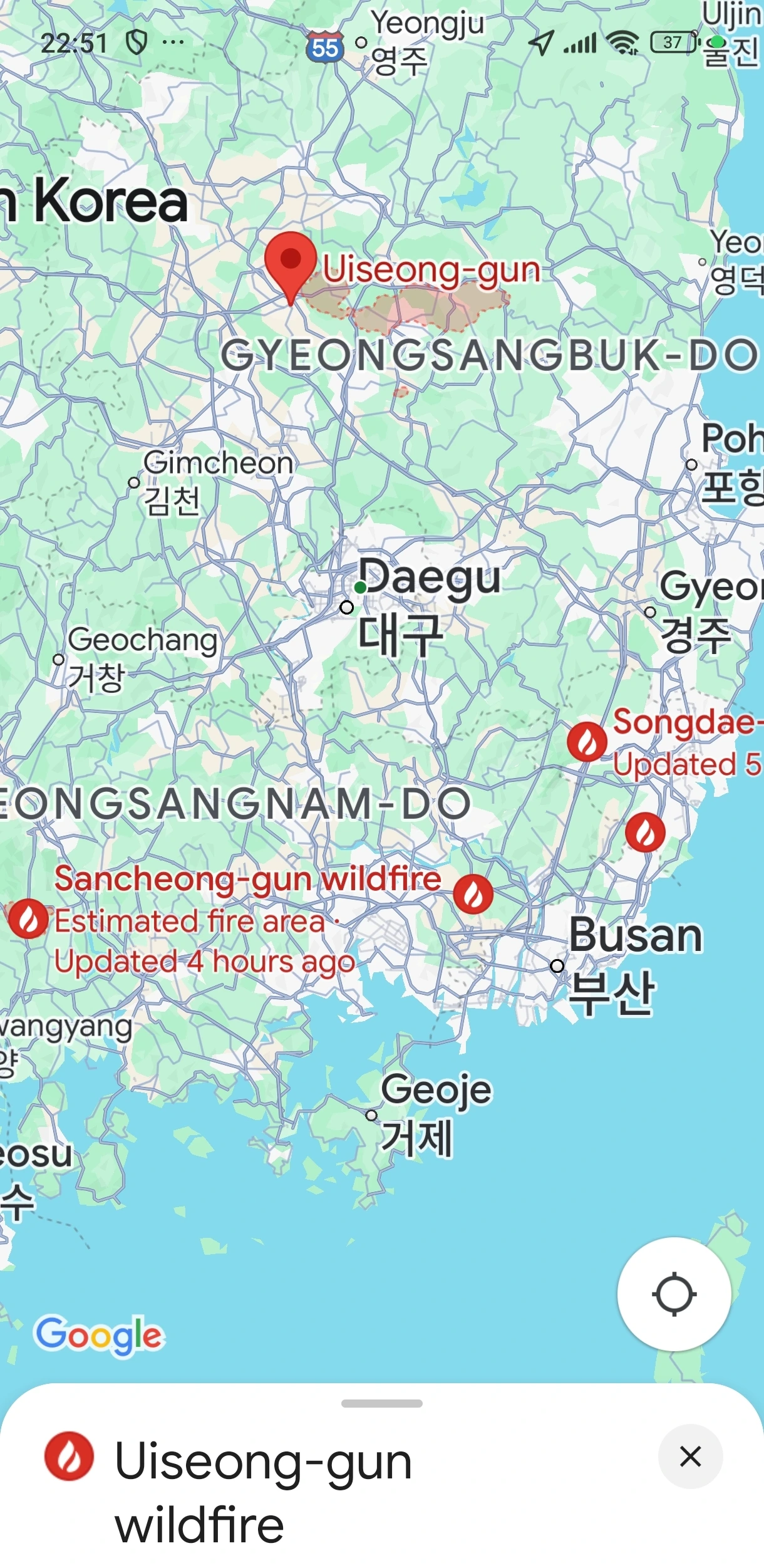 이제 대재앙은 어디에서도 일어날 수 있다. 내가 사는 도시라고 해서 안전할 거라는 생각이 안 든다. 내가 거주하는 주택에서 50미터 정도 떨어진 동네 산에 불이 나면 내 집도 안전하지 않다. 이 정도 강풍이면 불씨가 바람에 날려 마당의 나무와 집을 덮치는 것은 찰나이다. 그렇다면 당신이 사는 아파트는 안전한가? 아파트 외장 단열재가 가연성 소재로 된 곳이 많기에 불씨가 날아와 외벽에 불붙으면 순식간에 아파트 전체가 화염에 휩싸일 가능성이 높은 곳이 부지기수이다. 주택보다 더 위험할 수 있다. 주택은 도망갈 시간이라도 있지.