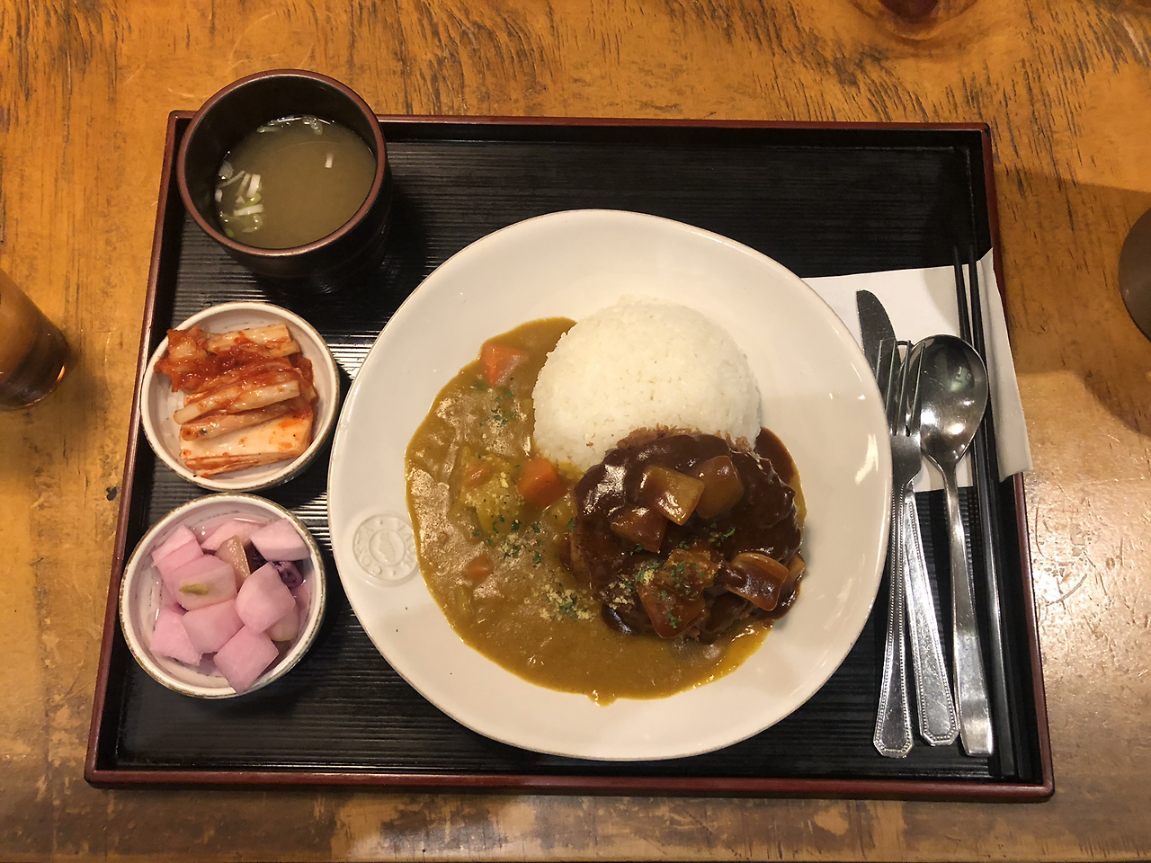 함박 소스와 카레가 서로 충돌되어 두 가지 맛을 다 온전히 느끼지 못했다