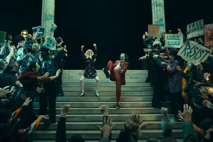 하지만… 이번에는 그런 추앙받던 신적 존재 조커를 완전히 짓밟고 타락시켜 버렸다. 우선 조커의 그 진하고 내면의 심리를 깊숙이 파고들던 깊이감은 온데간데없고 갑자기 불쑥불쑥 등장하는 난데없는 라라랜드 뮤지컬 장면들의 파노라마 행진이 벌어졌다. 특히나 조커 2는 그저 리(레이디가가)와의 러브 스토리에만 집중되어 있었다. 깊이감은 없어지고 어설픈 러브 스토리로 변질된 느낌이었다.