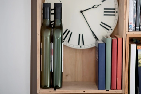 책꽂이에 여러 개 꽂을 수 있는 납작한 와인병이 출시되었다.