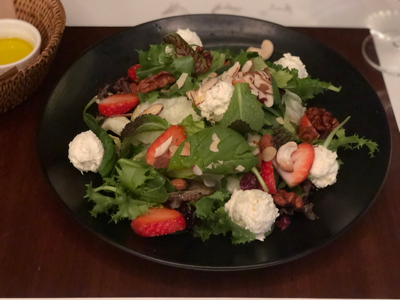 맨 처음으로 딸기 리코타 샐러드가 나왔다.