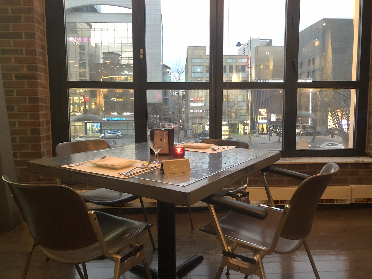 창가 자리는 연인들이 앉기에 좋을 듯한 로맨틱함이 있었다. 창가 쪽 자리는 천장이 높게 트여있어서 고급스러웠다.
