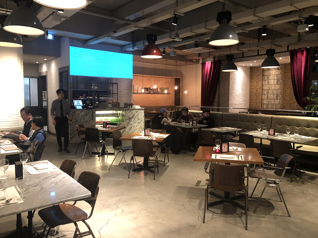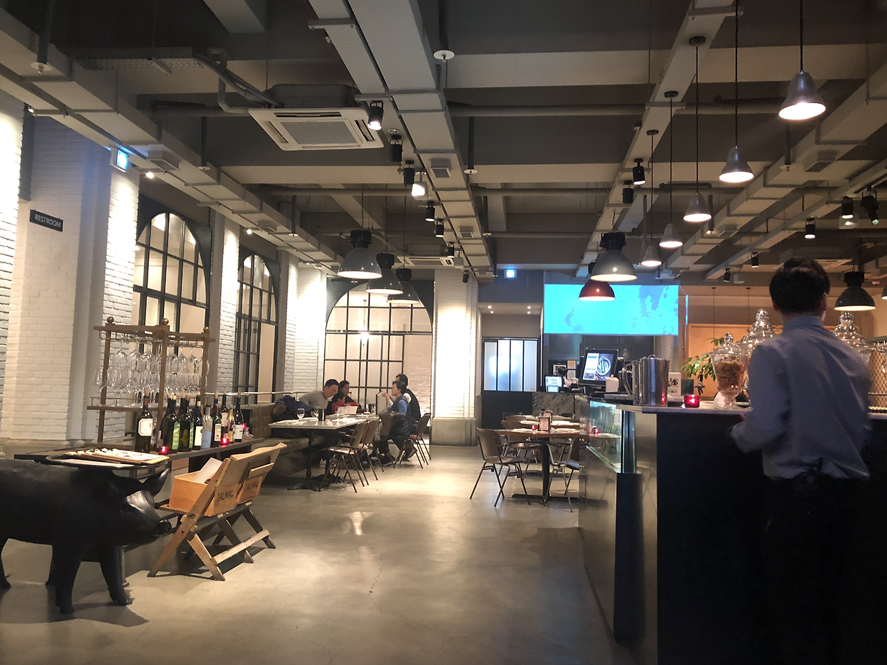 들어가면 이렇게 널찍한 홀에 테이블이 여유 있게 배치되어있다. 요새는 이렇게 홀을 여유롭게 쓰는 경우가 거의 없어서 비어있는 공간이 어색하게 느껴지기도 하고 한편으로는 여유 있어 보였다.