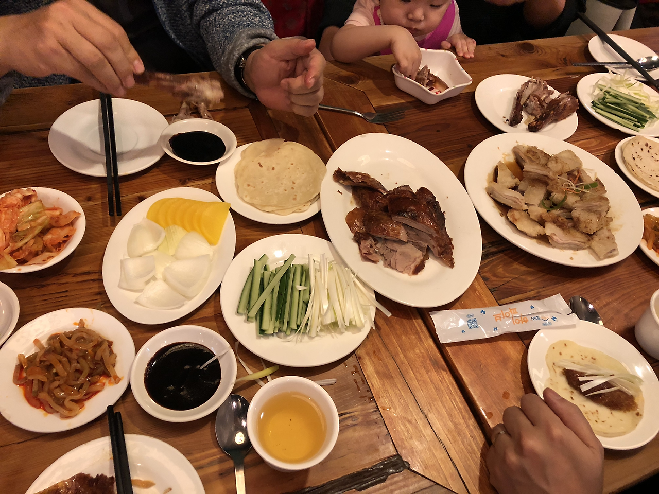 가장 먼저 오리고기가 등장했다. 내가 너무 좋아하는 메뉴이기도 해서 교회 모임을 뒤로한 채 가족모임에 참여하게 되었다. 하지만 내가 맛보았던 수많은 오리고기 중에 기억 남을 만한 맛은 아니었다. 다소 퍽퍽함이 느껴졌고 피도 두꺼운 편이었다.