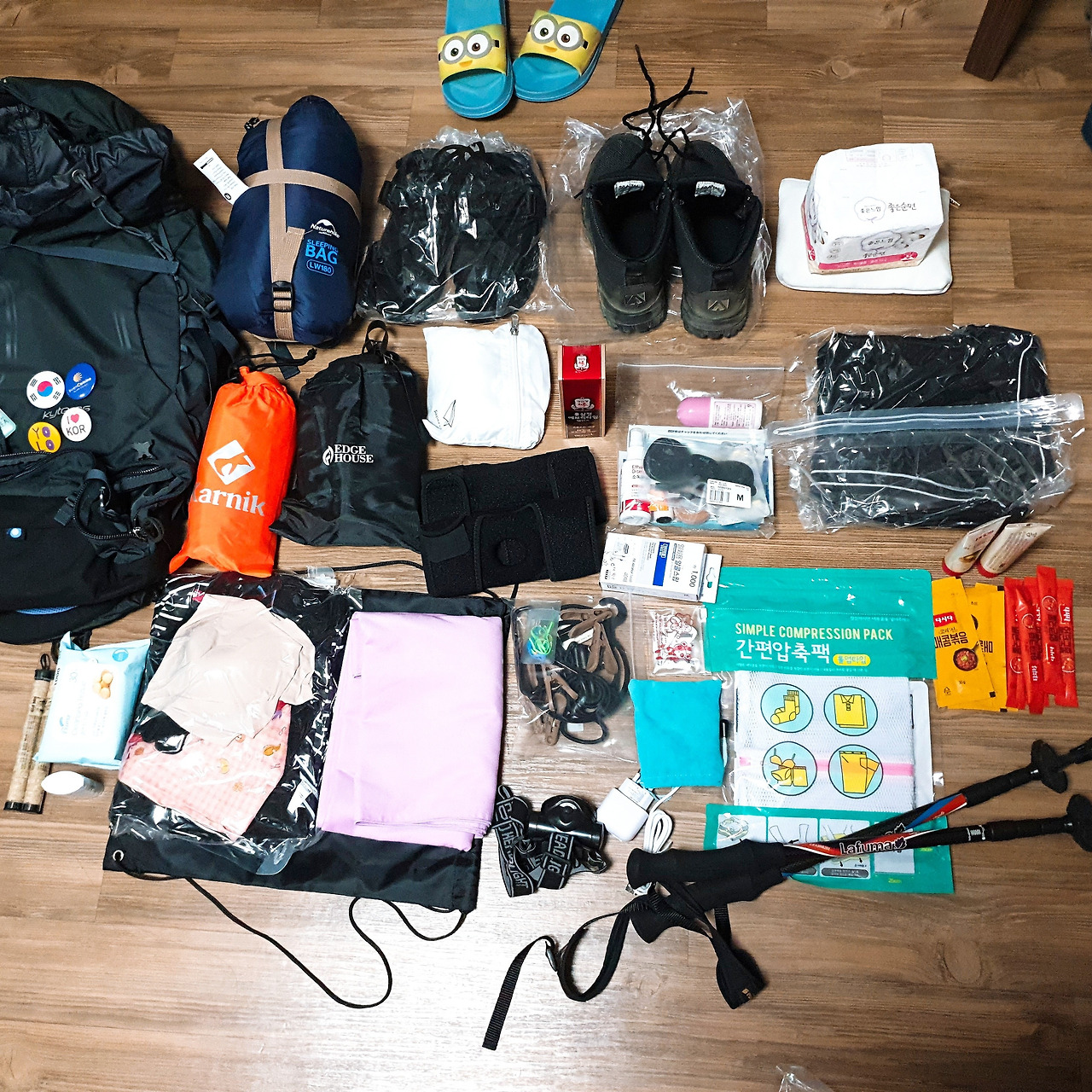 정말 이것저것 다 챙긴 짐들... 지금 보니 쓸데없는 것들도 참 많다.그렇게 모든 짐을 꾸리고 배낭을 메보는 순간, 알았다.