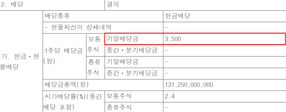 올해 배당금은 지난해 3300원에서 200원 오른 3500원입니다.