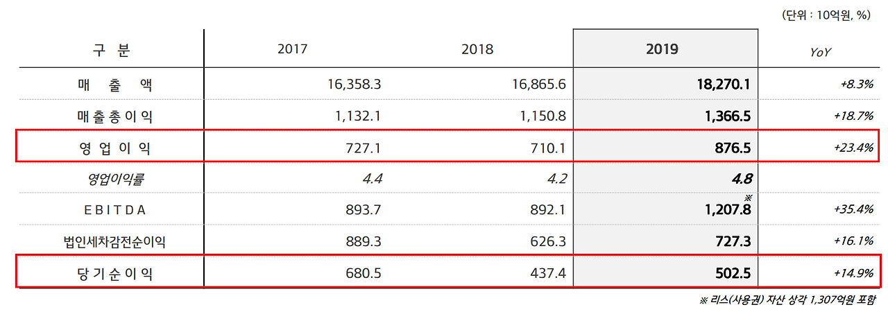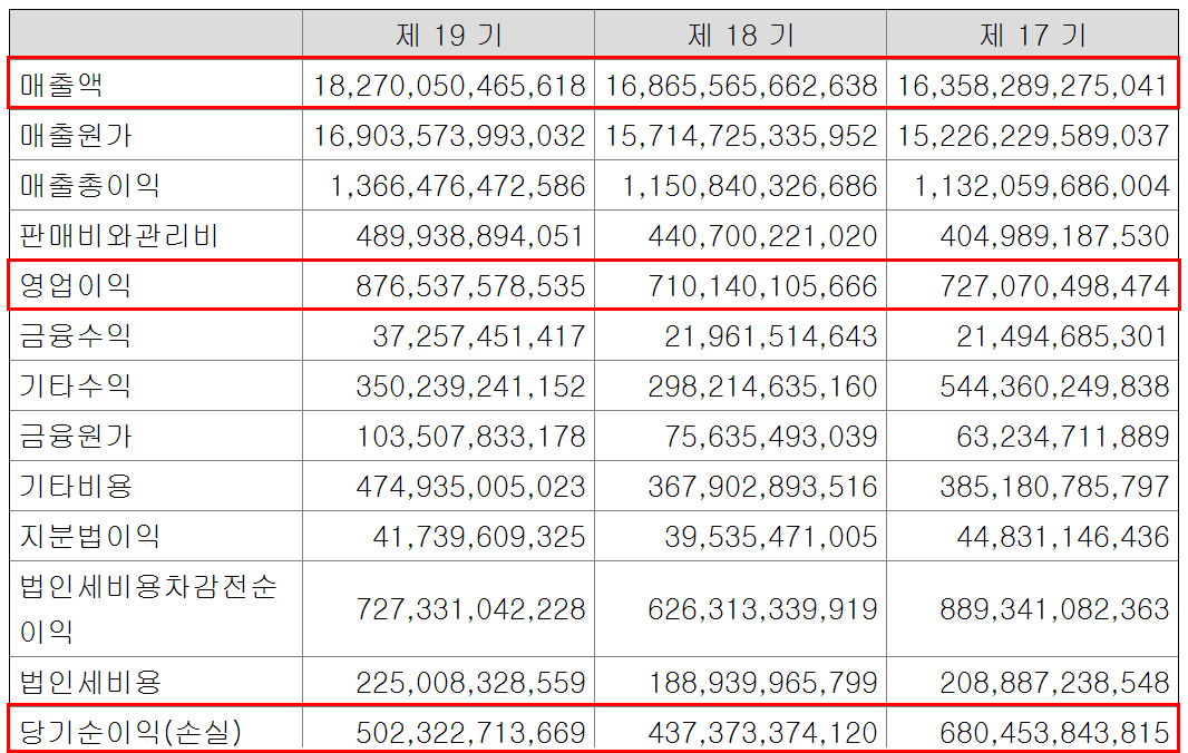 영업이익은 8765억원, 매출액은 무려 18조2700억원입니다.