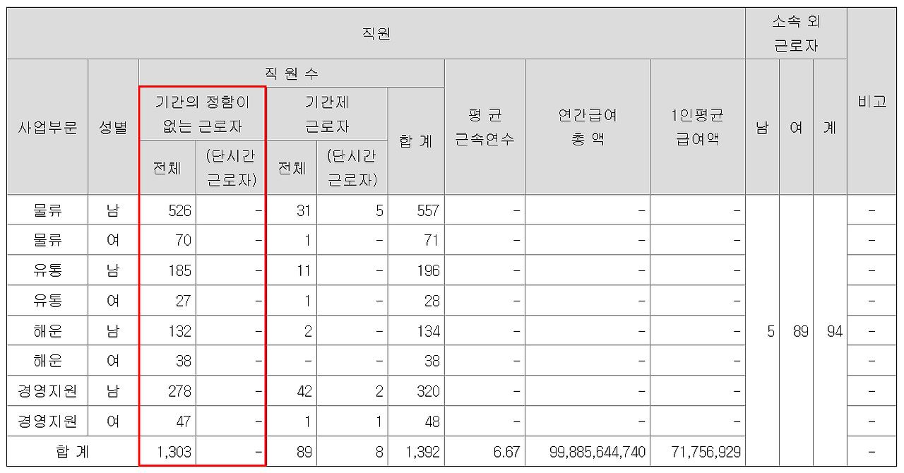 그런데 이 엄청난 실적을 이룩한 현대글로비스 총직원은 불과 1303명에 불과합니다.