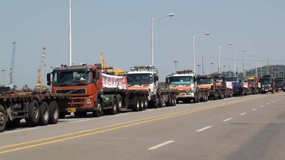 심 : 그래서 제가 정부나 여러 사람에게 이런 질문을 했습니다. 일반 노동자들이 콩나물 가격이 좀 내려갔다고, 물가가 내려갔다고 월급을 깎습니까? 이건 말이 안됩니다. 운임제도가 이렇게 제도화 돼 있고 설계가 돼 있기 때문입니다. 이번 포스코 경우에도 포스코에서는 비딩이라고 해서 운송사들에게 입찰을 강요합니다. 입찰을 할 때, 운임을 가장 적게 적어 낸 운송사에 물량을 가장 많이 배당을 합니다. 최저입찰제죠. 당연히 물량을 받기 위해서 운송사는 운임을 깎아서 입찰에 응하고, 그만큼 화물노동자에게 줘야 할 금액을 깎게 되는 겁니다. 이번에 포항에서 시작된 것은 포스코와 운송사들의 운송을 계속 삭감하기 위한 정책으로 발생한 거고, 현재 광양에서도 벌어지고 있습니다. 이것은 화물운송시장에서 계속 반복되는 일입니다. 저희들이 통계를 보니까 10년 동안 화물차 가격이 58% 상승했습니다. 매년 화물차 가격이 상승합니다. 10년 전 7천만원이던 차가 현재는 1억5천, 1억6천이고 10년 전에 1억2천이던 차가 이제는 1억8천 2억입니다. 이렇게 물가도 상승하고 차량 가격도 상승하는데 운임은 10년 전이나 지금이나 같거나 오히려 깎인 곳이 많습니다. 이런 일이 반복되는데 도대체 누가 참겠습니까? 도저히 참을 수 없어도 들고 일어나는 겁니다. 교수님이 포스코는 뉴스를 보고 아셨겠지만 최근 유통기업, 유통부문에서 계속 싸움이 일어나고 있습니다. 롯데칠성, 다코넷 등등. 모든 곳에서 싸움이 반복되고 있습니다. 10년 동안 운송비가 한 번도 안올랐어요. 그런데 물가나 기름값 등. 또 공제조합의 보험료는 17년 18년 동안 10~20% 일괄 상승했고 통행료도 올랐어요. 그런데 운임은 밑바닥이기 때문에 더 이상 운행을 할 수 없어서 이런 싸움이 일어나는 거고, 운임제도를 바꿔야 하는 겁니다.