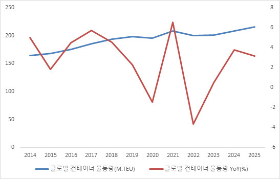컨테이너 선박의 계약량, 인도량, 폐선량을 고려하면, 2024년 글로벌 컨테이너 선복량은 약 2777만 TEU로 전망되며, 이는 2023년 대비 약 7.74% 증가한 수치입니다.