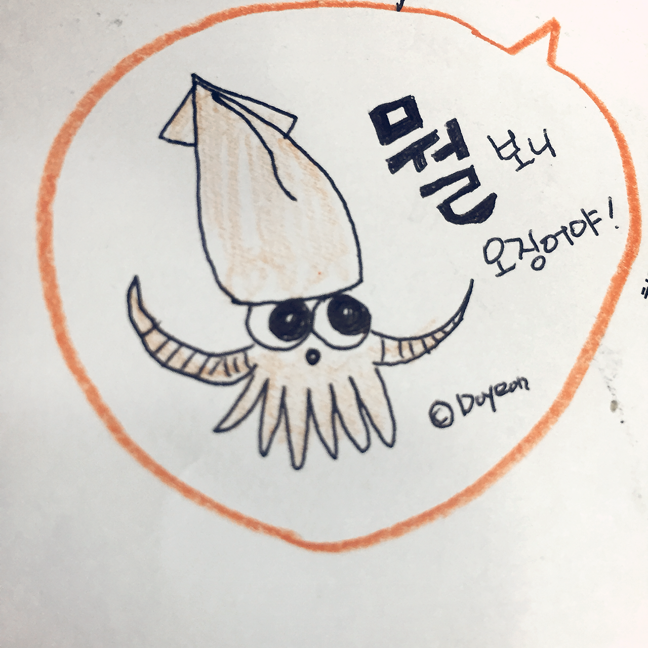 "그럼 나도 이 순간이 즐겁고 밥이 얼마나 맛좋은지 몸으로 한번 보여줄까. 쩝쩝 어때?"