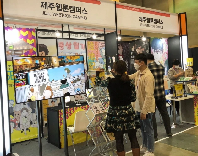 한국만화영상진흥원에서 전국의 웹툰캠퍼스 입주작가들을 대상으로 공모한 2021 지역소재 웹툰창작지원사업에 선정되었어요. 제주지역을 소재로 5화 분량의 웹툰을 제작하고 매체에 연재하는 사업이었는데요, 이 지원사업을 통해 제작한 작품인 「주파수」가 네이버웹툰 도전만화 3회 만에 베스트도전으로 가게 되었고, 2021 넥스트콘텐츠페어에도 참가하여 계약실적도 낼 수 있었습니다.