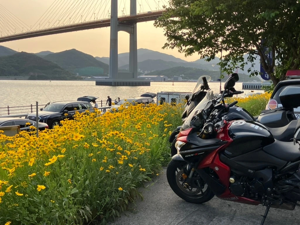 창원 귀산해변으로 향했다. 마산항을 끼고 달리는 길은 묘하게 활기찼다. 거대한 크레인이 바다 위로 팔을 뻗고, 컨테이너가 겹겹이 쌓여 있었다. 제법 발달한 항구의 모습이었다. 흔히 바다 하면 떠오르는 이미지는 아니었지만 그 나름대로 주행에 즐길거리를 더 해주었다.