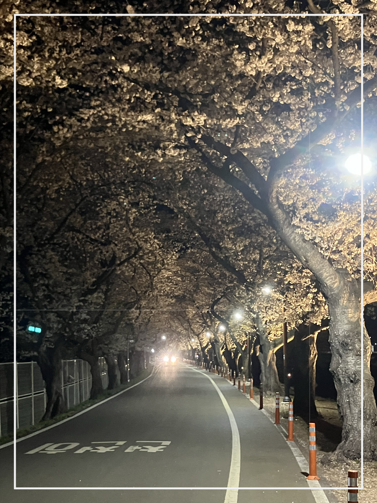 왕릉은 묵묵히 자리를 지키고 있다. 돌로 쌓은 무덤은 천 년을 버티고, 사람의 이름은 그 무덤 아래 잠들어 있다. 꽃잎은 바람에 실려 며칠 만에 사라지지만, 왕릉은 천 년을 견뎠다. 그러나 그 천 년을 견딘 돌 위에 지금 꽃잎이 내려앉아 있다. 순간과 영원이 같은 자리에서 겹쳐진다. 나는 그 길을 달리며, 영원과 찰나를 동시에 본다.