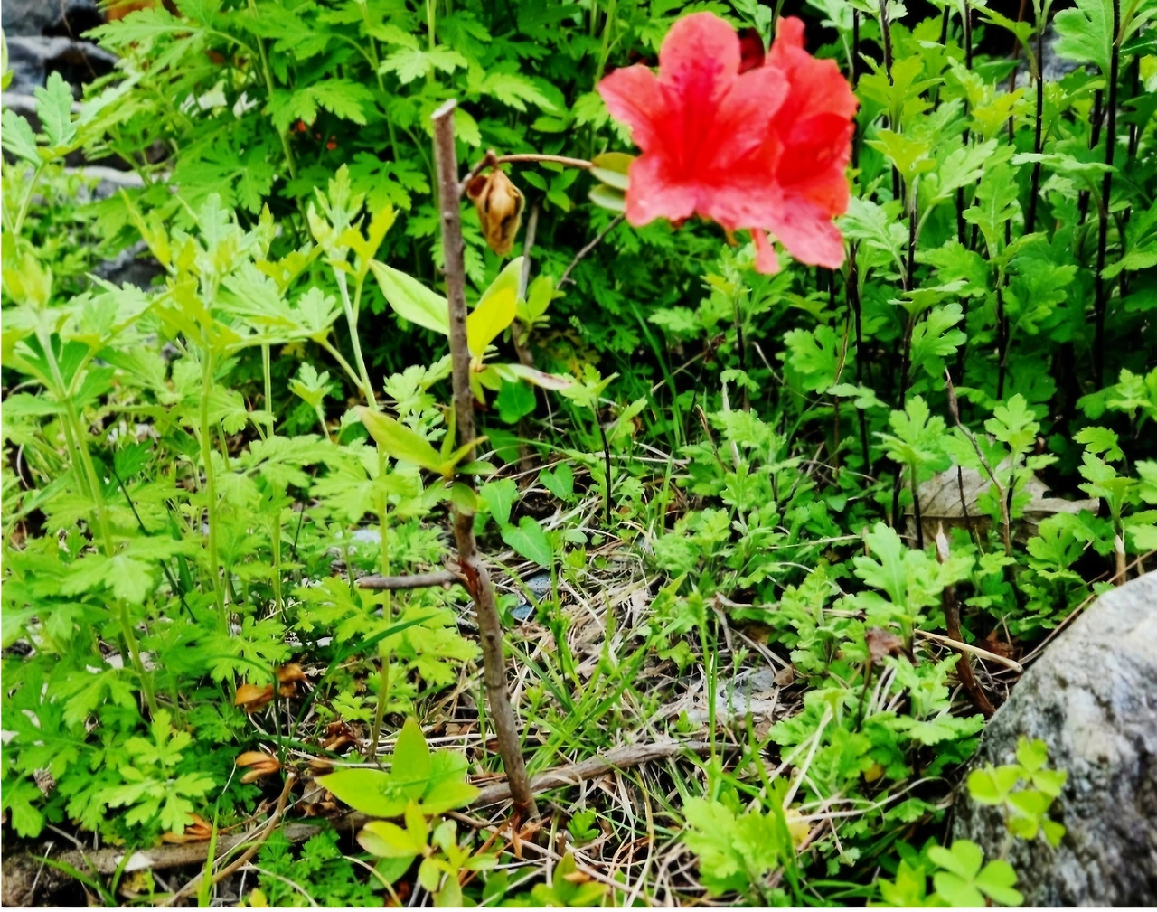둔덕에 숨어있던 영산홍이 화려하게 피어 존재감을 드러내었다.