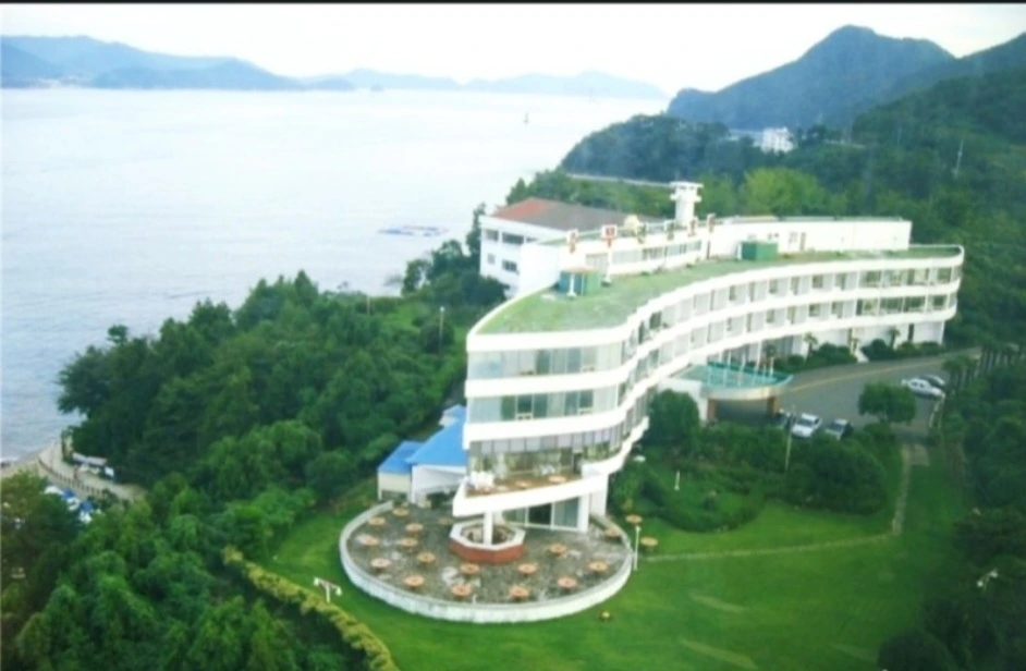 푸른 다도해가 보이는 바닷가 언덕 위에 있는 나지막한 호텔.