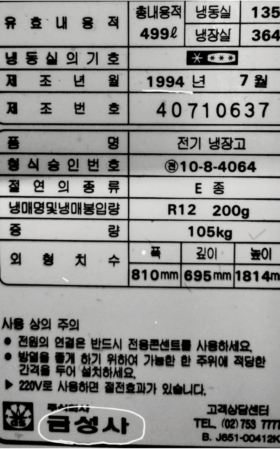 "저는 1994년도 산 귀회사 금성 냉장고를 고장 한 번 없이 지금껏 멀쩡하게 잘 쓰고 있어요.