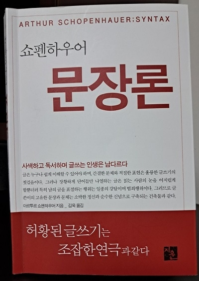 글쓰기에 눈뜨기 전에는 책에 관심이 많았다. 체계도 없이 이 책 저 책 잡식을 했다. 글을 쓰기보다는 읽기가 편했다. 왜 그렇게 글쓰기는 하지 않고 책에만 매달렸는지 쇼펜하우어를 만나고 알게 되었다. 바로 <쇼펜하우어 문장론>이다. 다소 투박하고 거침없는 표현이 많아서 불편한 점도 있었지만 강경하고 확신에 찬 어조와 문체는 글쓰기에 입문하려는 내게 필요한 '쓴소리'였다. 쇼펜하우어는 철학자로 많이 알려져 있으며 그의 작품 중 대표작으로는 <의지와 표상으로서의 세계>가 있다. 그 책은 아직 읽지 못했으나 조만간 읽어보려고 한다.