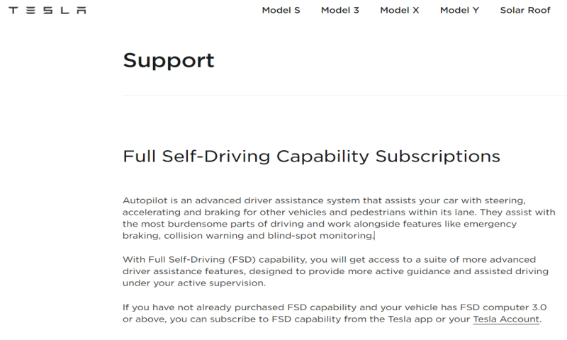 지난 7월 17일 테슬라는 운전 보조 서비스(?!)인 FSD(Full Self Driving)의 구독을 미국 홈페이지에 게시하고 서비스를 시작했습니다.