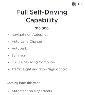 FSD는 그동안 구매 가격을 지속적으로 올려 왔습니다. 최초 론칭 시에는 7,000불이었지만 8,000불을 거쳐 현재 1만 불에 판매하고 있습니다.