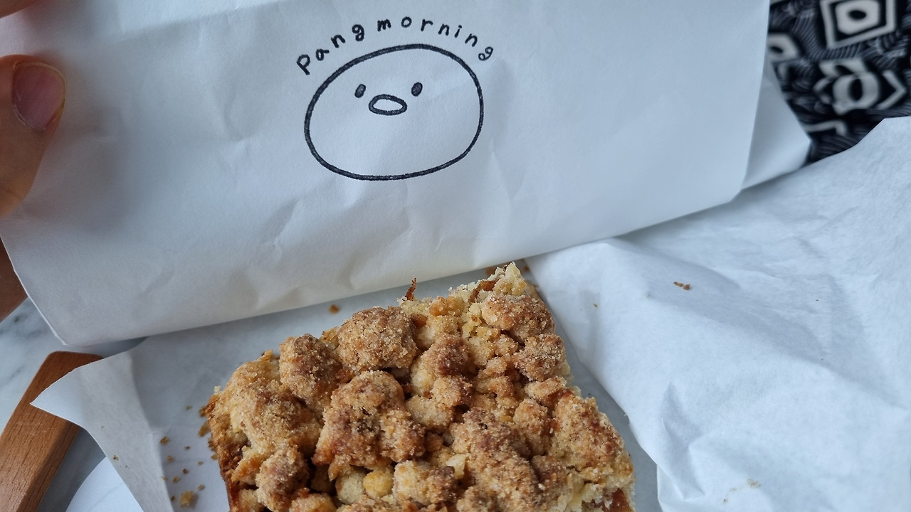 그리고 계단으로 내려오다가 빵집에서 애플 크럼블을 구입했습니다.