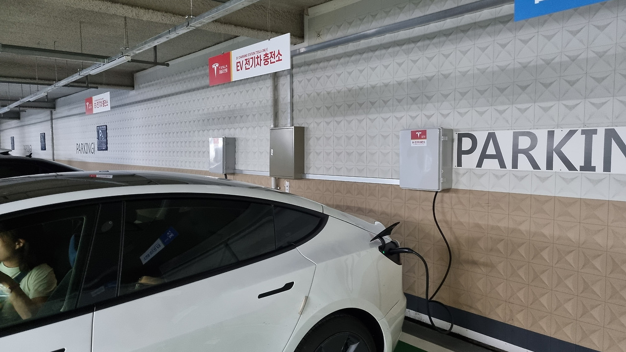테슬라 차량이 무료로 충전할 수 있는 거죠. 지하 2층에 있습니다.