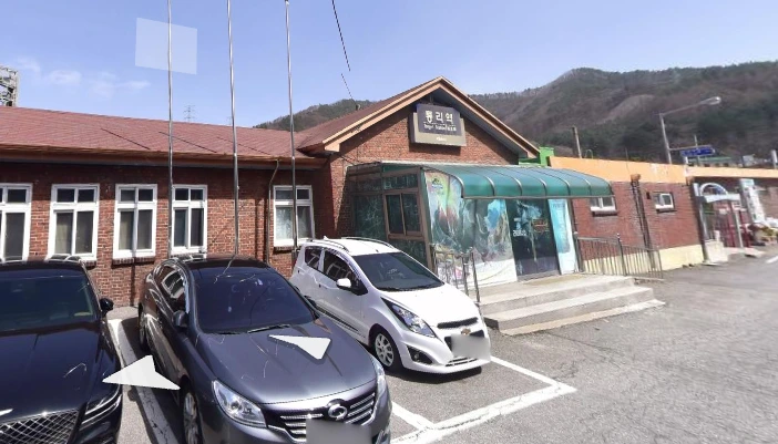 내비에서 오로라 파크를 찍고 가면 지금은 폐역인 통리역이 나오고 조금 더 지나서 올라가면 넓은 주차장이 나옵니다.