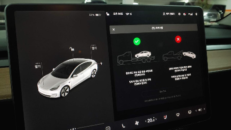 이런 경우 모델3는 정비 메뉴로 들어가 견인 모드를 작동시키면 됩니다. 견인 모드를 작동시키면 차를 밀수 있게 됩니다만 이게 모터 쪽에 전원이 들어와 있는 상태이기 때문에 배터리 소모가 제법 발생하더군요. 하루 밤새워 놨는데 3% 정도가 그냥 빠져 버렸습니다. 아침 출근길에 잽싸게 주차장에 가서 다시 주차를 했네요. ㅎㅎ
