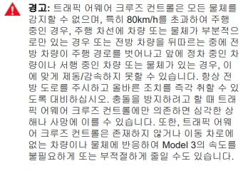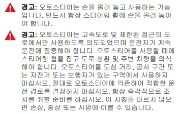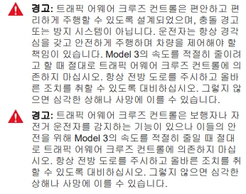 또한 차량 매뉴얼에는 오토파일럿 관련 기능에 아래와 같은 경고문들이 있습니다.