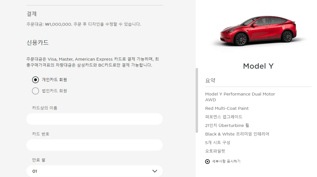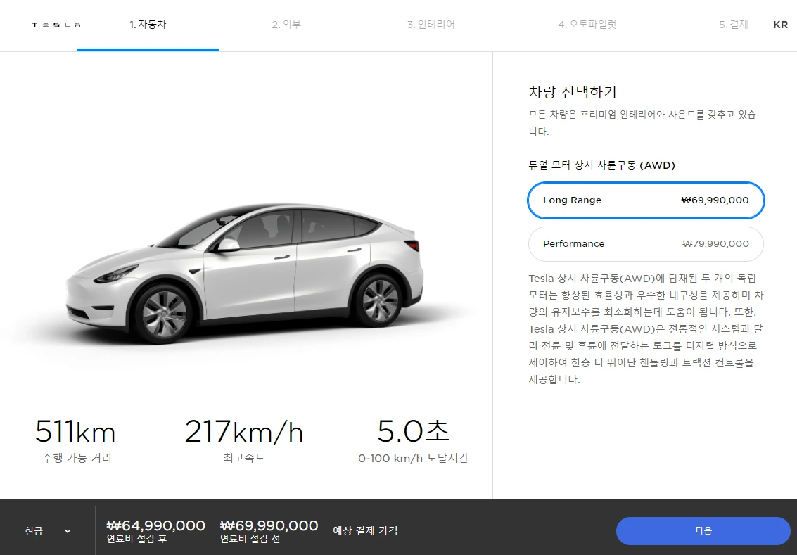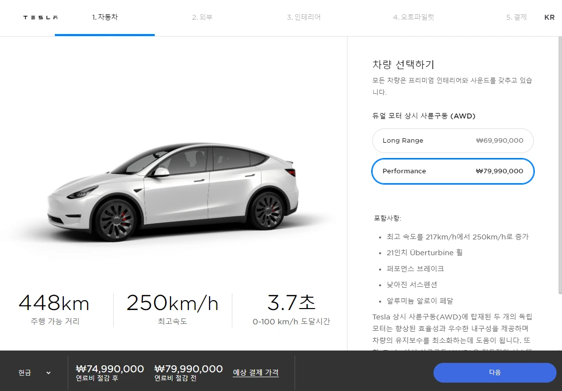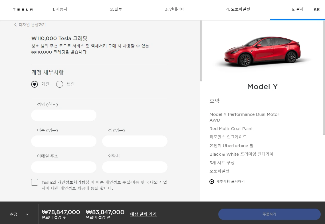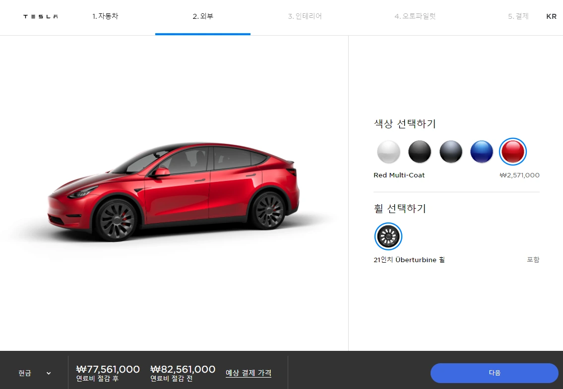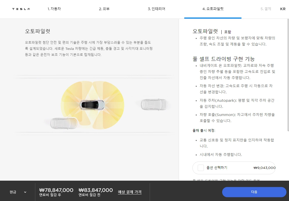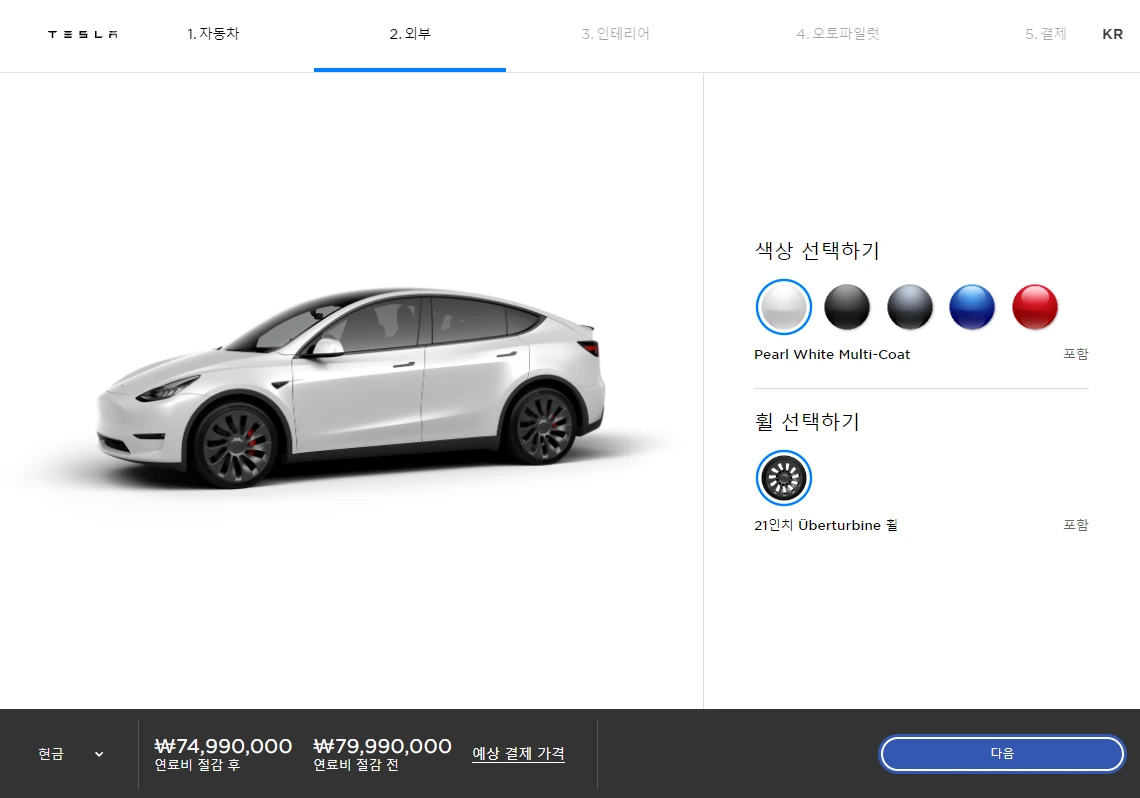 여기서부터는 테슬라 홈페이지에서 주문할 때와 동일합니다.