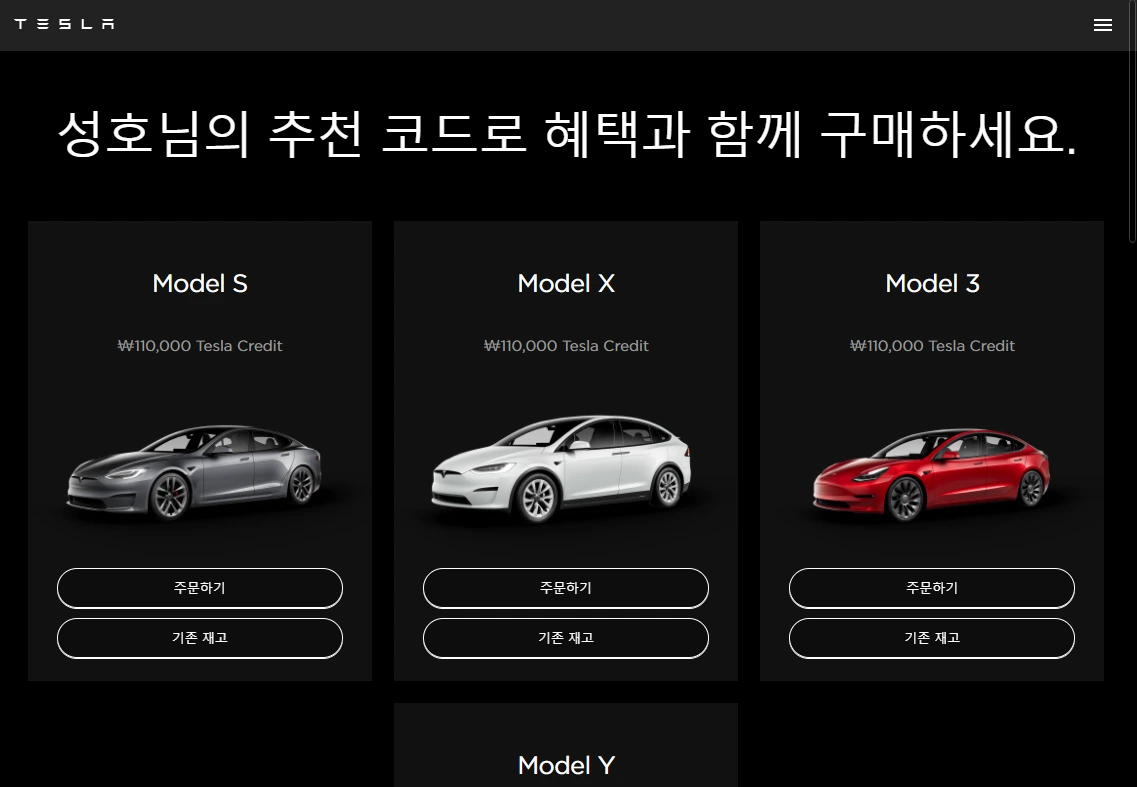이러한 추천 주소로 들어가서 주문하지 않고 테슬라 홈페이지로 바로 들어가 주문하면 차 구입시 받을 수 있는 크레딧을 받을 수 없게 됩니다. 제 것이 아니더라도 꼭 레퍼럴 코드로 들어가서 주문하세요.