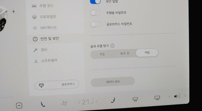 안전 및 보안 메뉴를 보시면 "실내 과열 방지"라는 메뉴가 있습니다.