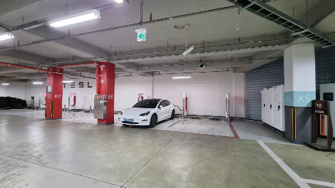 강릉슈차는 라카이 샌드파인 리조트 지하 1층에 있습니다. 리조트에 진입하면 슈퍼차저 푯말이 있어 찾아가기 쉽더군요. 평일이라 그런지 6자리가 모두 비어 있었습니다.