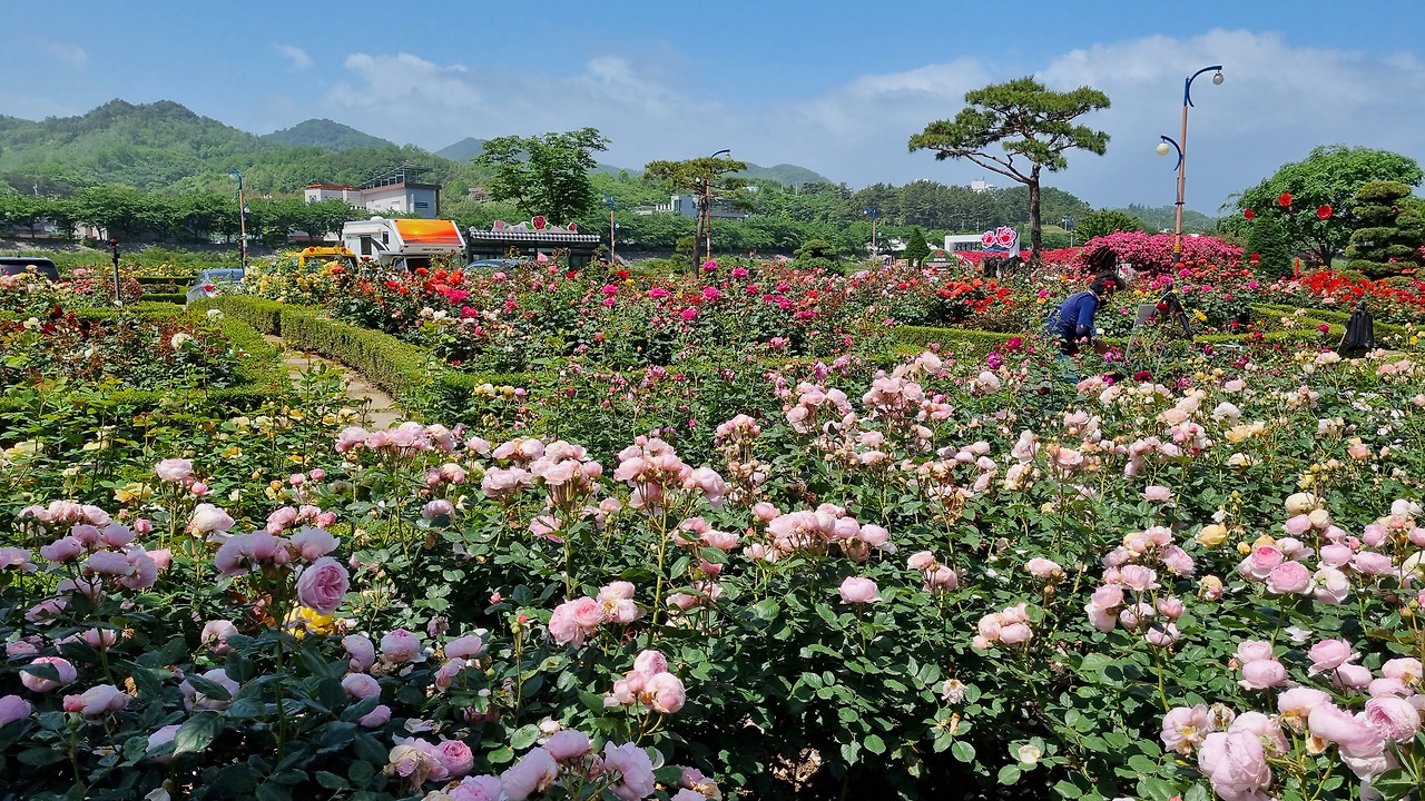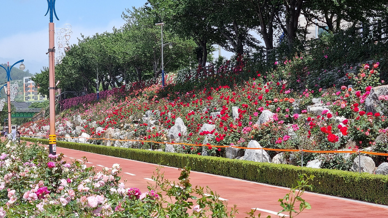 도로변까지 모두 장미가....다만 음악을 90년대 음악으로 너무 크게 틀어 놓아서 관람에 방해가 될 정도였습니다.