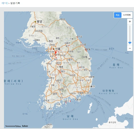 그동안 다녔던 위치들을 지도에서 한눈에 볼 수 있습니다.