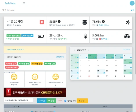 테슬라메타가 보여주는 다양한 내용들메인화면부터 하나씩 보죠.