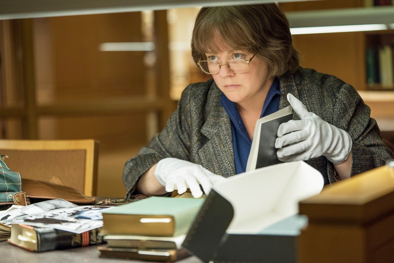 그녀는 괴팍하고 외골수에다 솔직히 뚱뚱하고 안 예쁘다. 꾸밀 의지도 여력도 없어 보인다. 돈도 친구도 없다. 애지중지하는 고양이와 동거 중인 50대 독신녀 리 이스라엘(멜리사 맥카시 Melissa McCarthy)은 알코올 중독 직전의 작가다. 여기까지 보면 답답하다. 누가 봐도 실패한 인생이다. 한때 뉴욕타임스 베스트셀러 목록에 자신의 책을 올려놓았던 그녀는 아무도 관심 없는 여자 코미디언의 자서전을 쓰겠다고 힘만 빼고 있다. 담당 편집자도 그녀에게 등을 돌린 지 오래다.