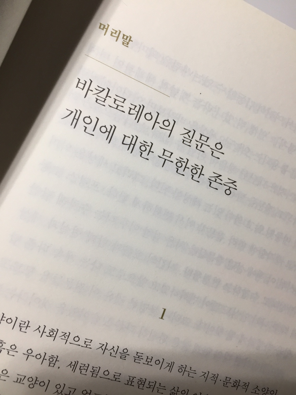 개인에 대한 무한한 존중을 나타낸다는 바칼로레아의 질문이 나에게 적용되면, 존중은 커녕 어째서 열패감과 자괴감을 안겨주는지는 저자의 머리말 글에 이미 나와 있다. 나의 무지와 무식은 어제오늘 일이 아니니, 새삼스러울 것도 없다. 그래도 가끔 진리는 나의 빛이 아니라 상처라는 느낌을 지울 수 없다. ‘무지하다는 것을 아는 고통’은 ‘무지의 고통’보다 그래도 나은 건가?