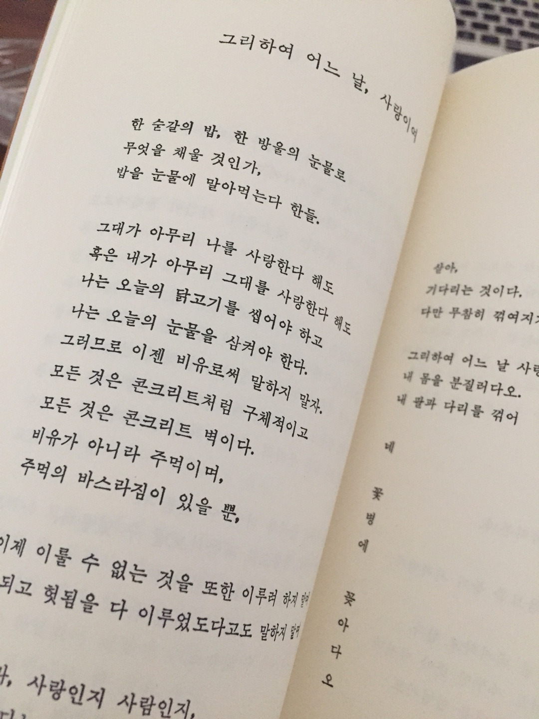 정치적 경제적 사랑... 사회적 문화적 애인... 시인의 젊은 날은 치열하고 비장하고 약간 비루했던가 보다. 사랑의 수식어와 애인의 수식어가 남다르면서도 슬프다. 결국 시인의 마음에서 죽어버린 한 시절의 인연이었겠지만.