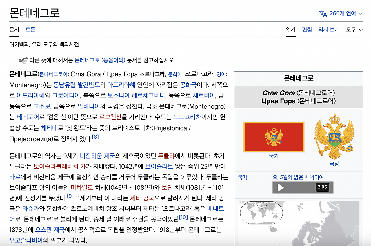 1) 위키백과 - 몬테네그로 캡쳐