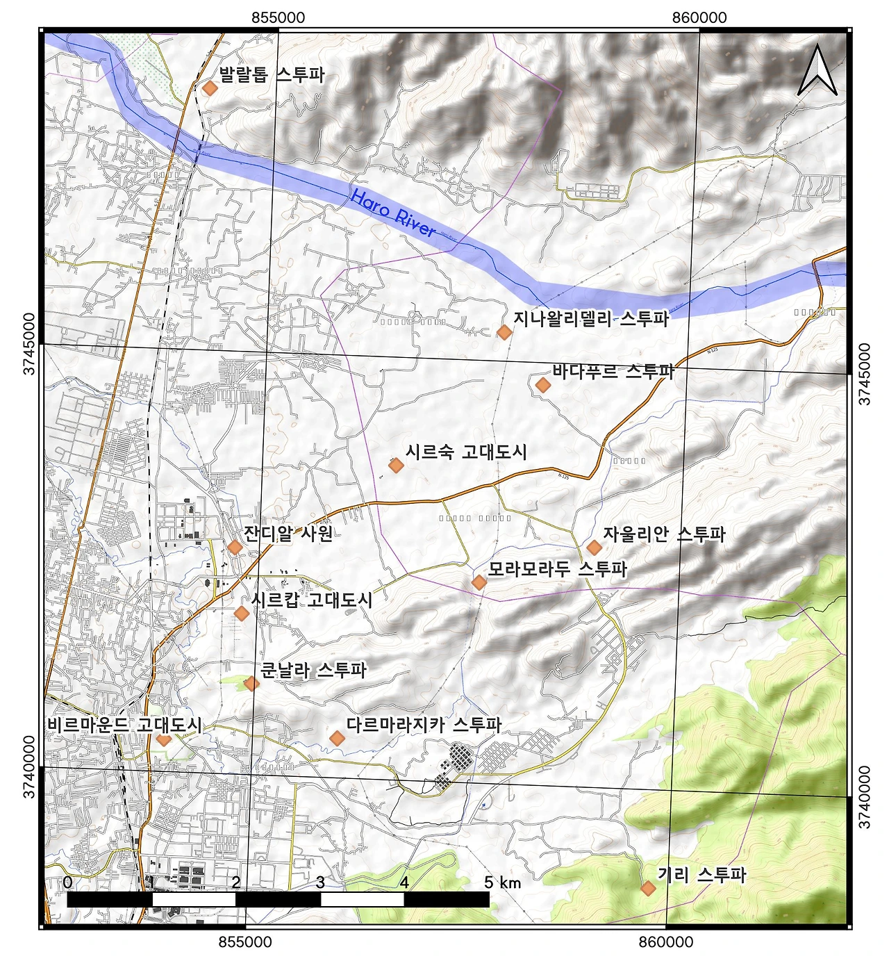 탁실라 주요 문화유산 지도