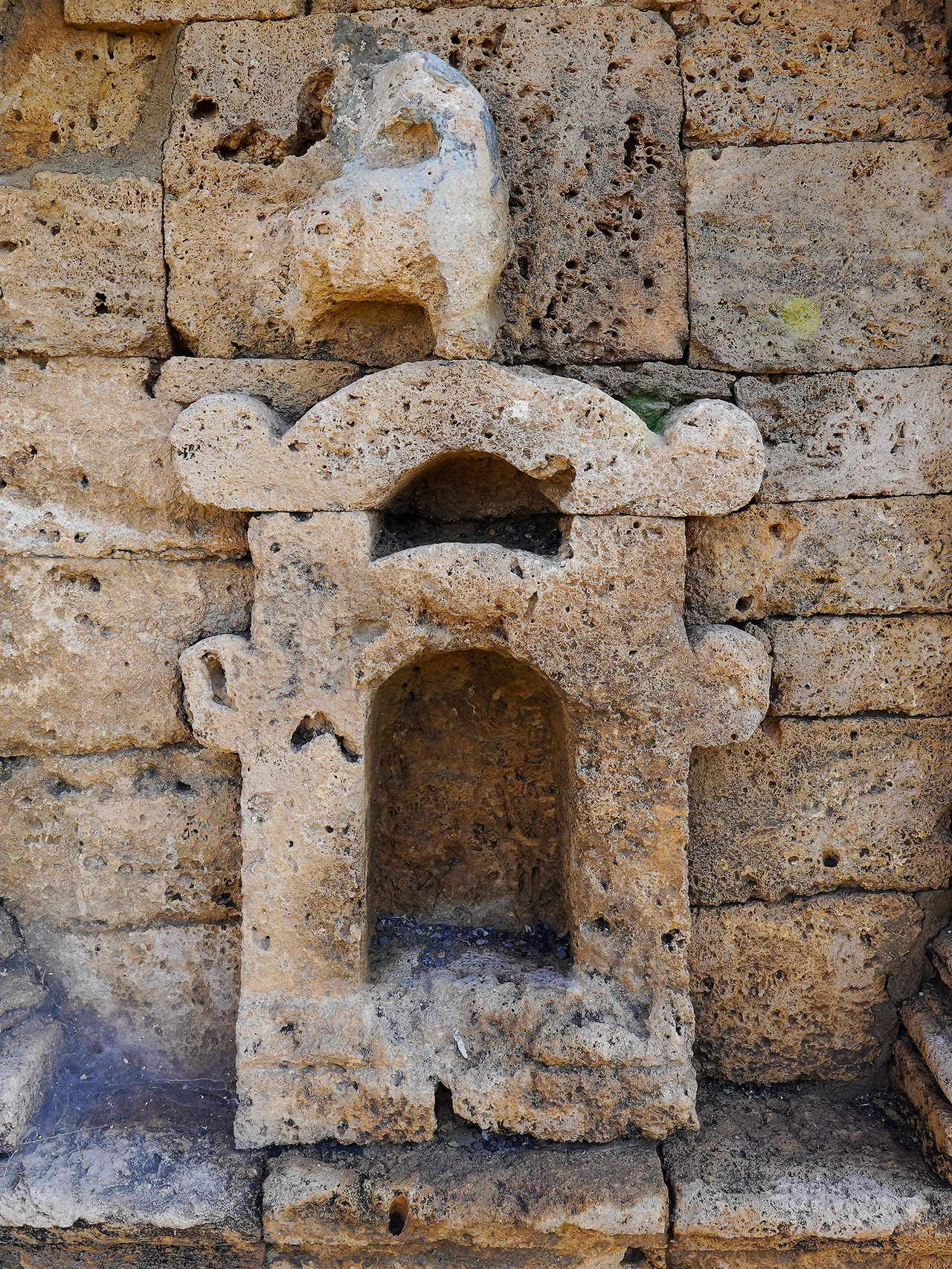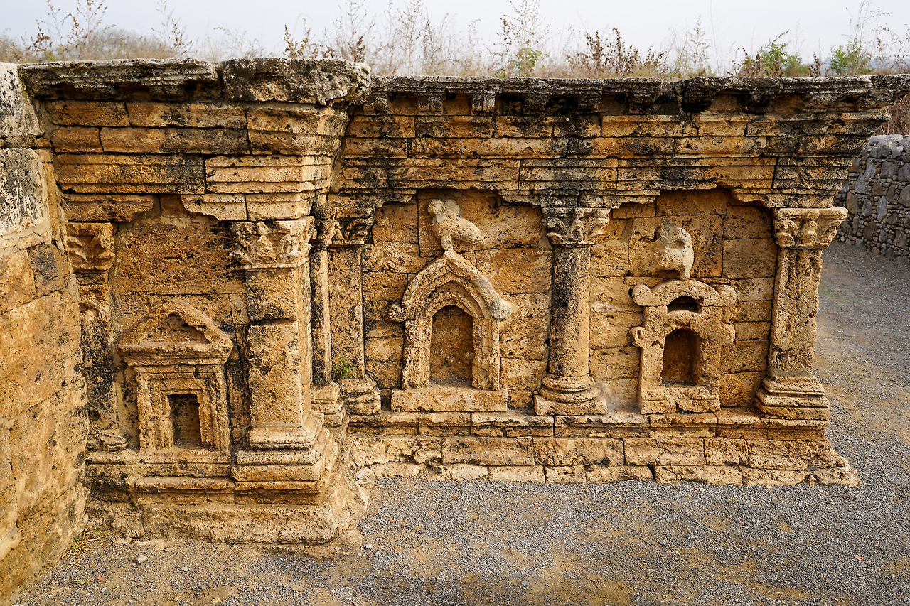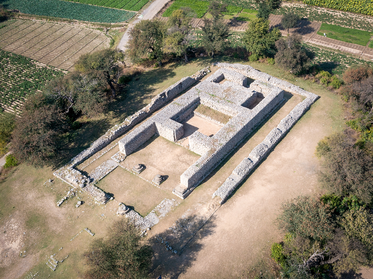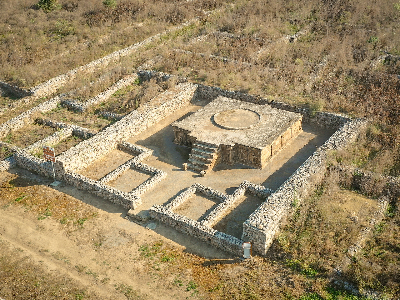 소개하는 김에 그리스 건축양식이 담겨있는 또 하나의 사례를 소개하고자 한다. 탁실라에 위치한 고대도시 시르캅에는 쌍두취탑 사원(Double-Headed Eagle Shrine)이라 불리는 유적이 있다.