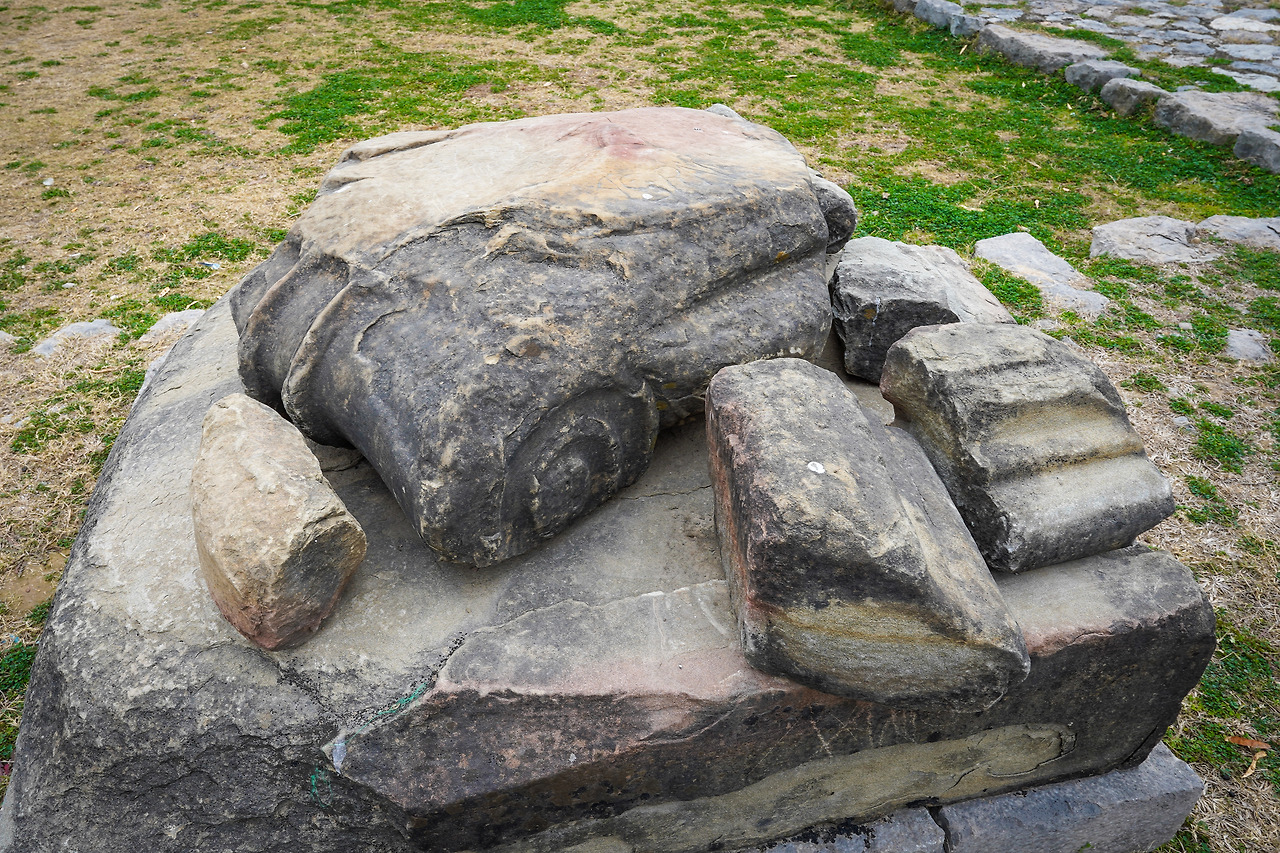 부재를 통해서 이오니아식 기둥이 사용된 것이 확인된다. (좌) 기둥 하부부재, (우) 기둥 상부부재